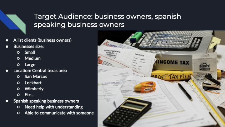 - Secondary | Spanish-speaking business owners who prefer communication in their native language.