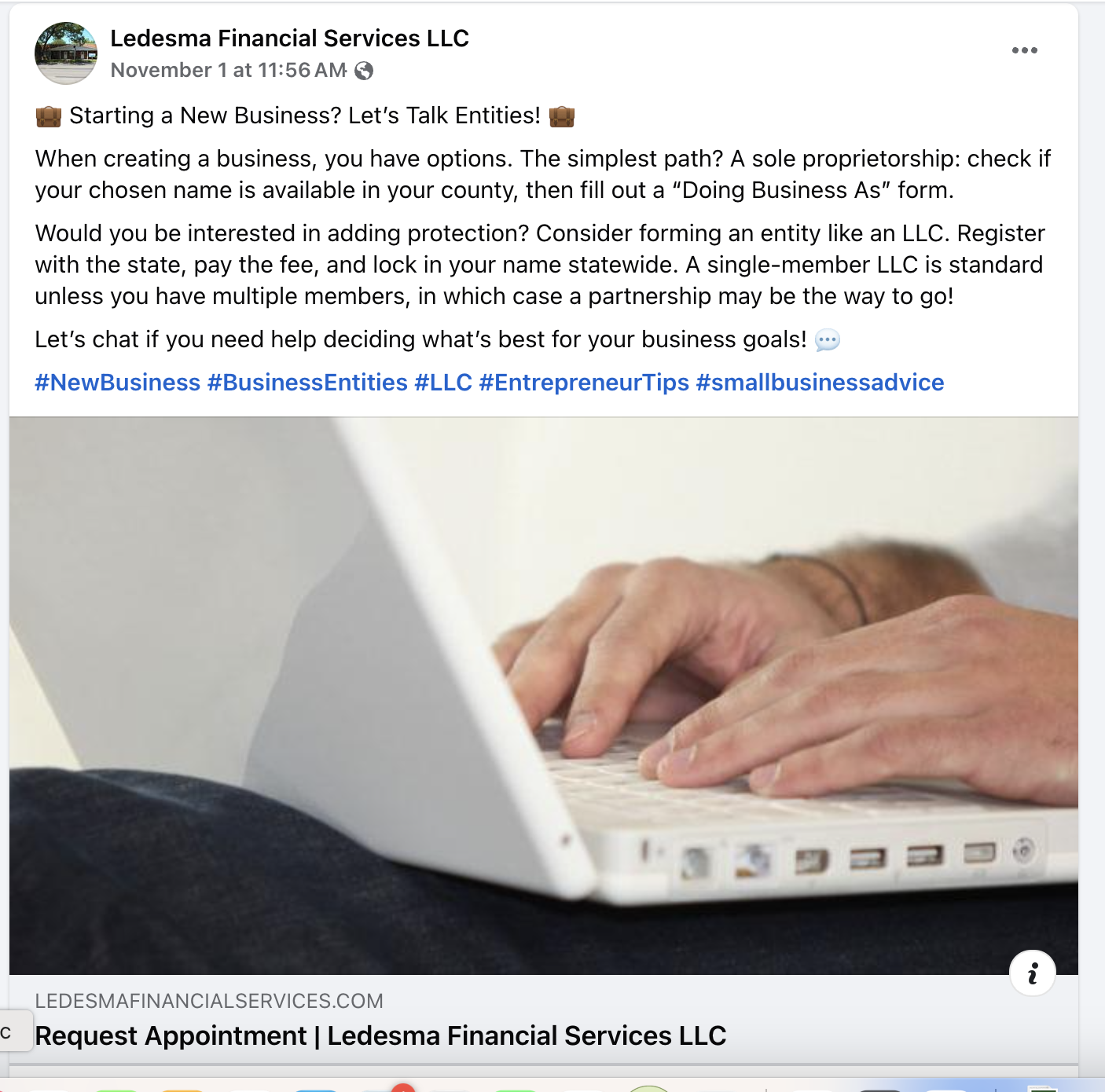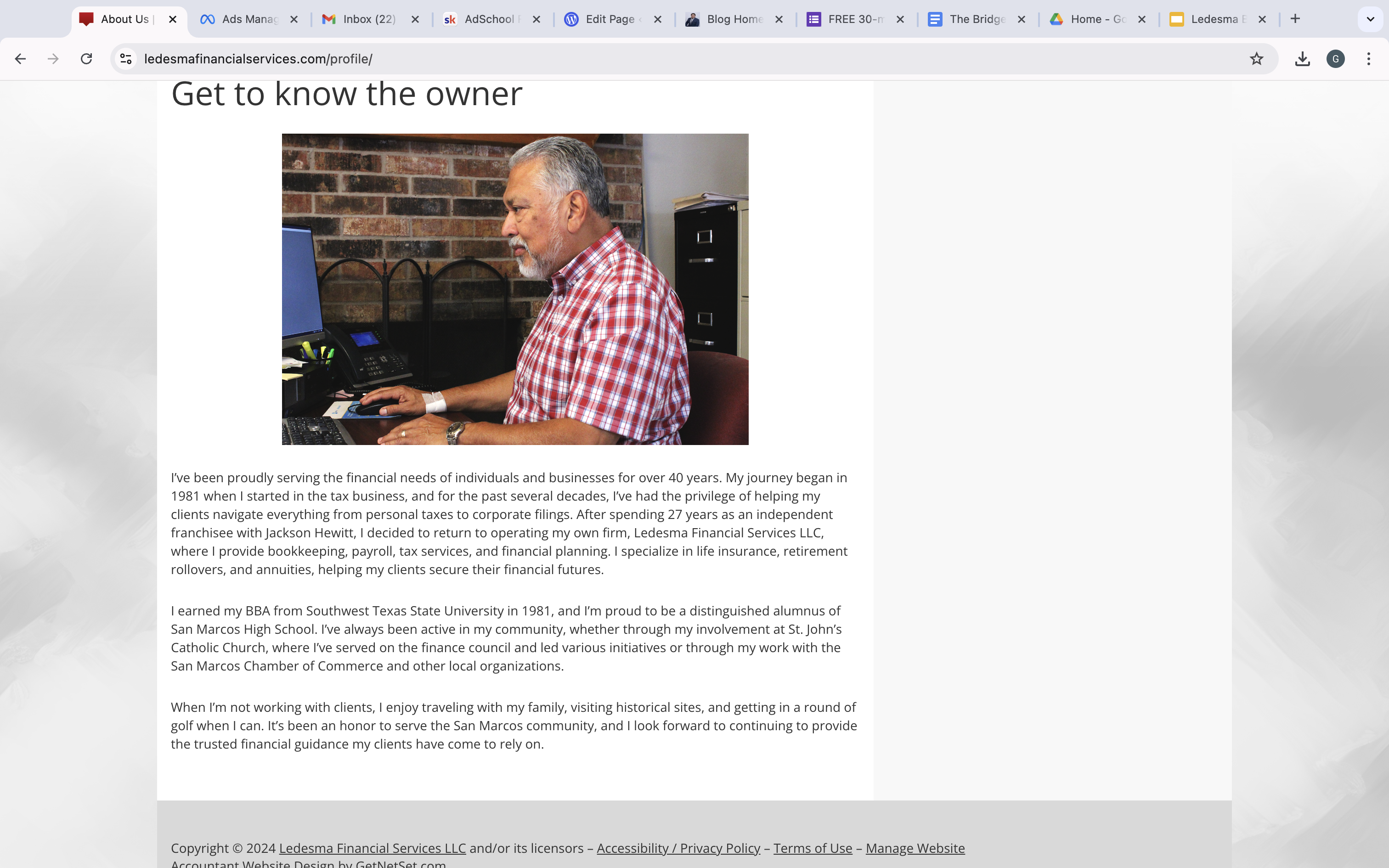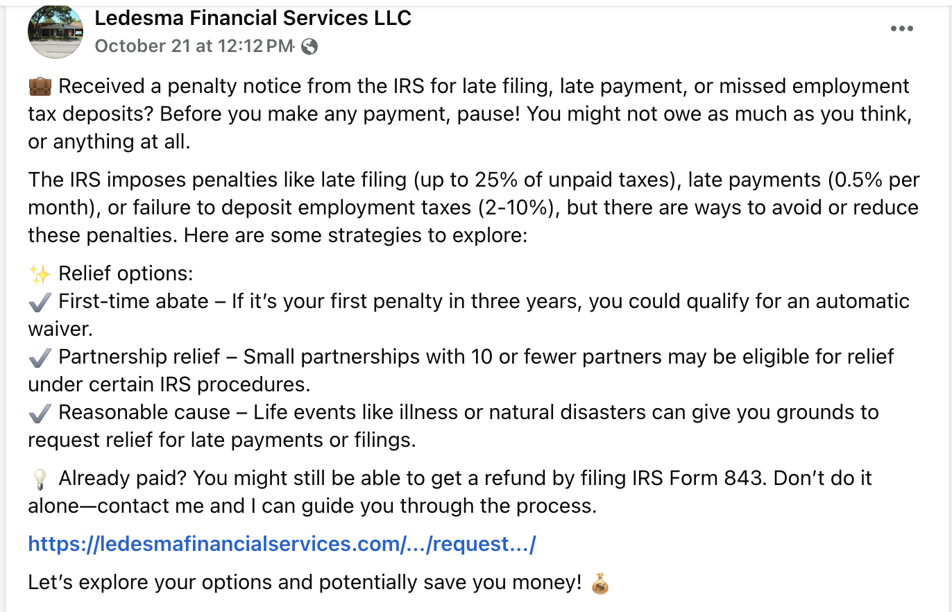 I partnered with Ledesma Financial Services LLC, a newly established company, to elevate their marketing strategy and increase brand awareness among business owners in Central Texas, including Spanish-speaking entrepreneurs. By addressing key pain points and highlighting the value of professional financial services, I developed a comprehensive campaign designed to increase visibility, engagement, and conversions. The strategy included optimizing their website with a user-friendly landing page, revamping their Facebook presence, and launching targeted Meta ads to reach their ideal audience. This localized approach not only positioned Ledesma Bookkeeping LLC as a trusted, bilingual service provider but also aimed to foster meaningful client relationships while achieving measurable KPIs such as impressions, clicks, and conversions over a six-month period.